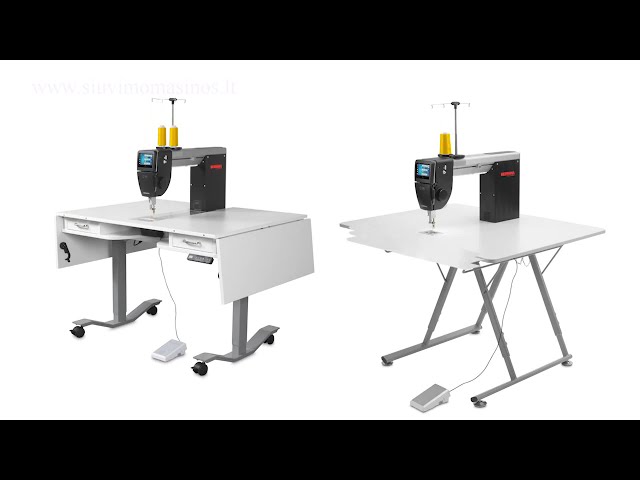 BERNINA Q16 mašina skirta dirbti su riboto dydžio stalu, sėdint. Stalas parduodamas atskirai , galimi 2 skirtingi variantai.